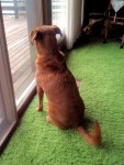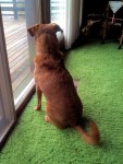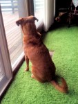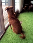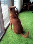 Sophie waiting. She waited for more than 30 minutes before deciding to take a nap so she would be extra ready when they came. It is great to be a hound!