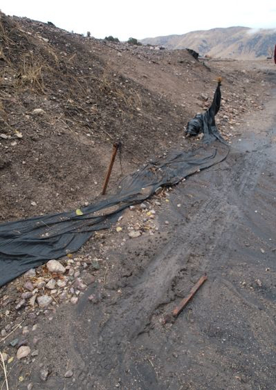 It began to rain again. I found an unused silt and took a rock six times the size of my hand and pounded the stakes into the ground. I tucked the bottom edge under and secured it with a few smaller rocks so that it could trap anything that rolled off of the mountain before it could roll into the road. I was muddy and wet. Each time I picked up a rock to place it more safely in the mud I remembered it. Each rock had found its home along my driveway. I had arranged them in a decorative and functional path working with the vegetation to keep the erosion in check. Now there were no plants to help with that plan even though the rocks kept their vigil over what had been my driveway.