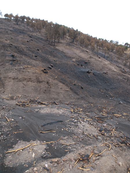 Today I watched the dirt swirl down the hills from behind my house and across the road. With nothing left to hold the soil it ran in rivulets down the sides of the mountain following the preordained troughs cut into the hillside from years of erosion. I wondered when I looked at the them today if the original paths that were being made bigger were there when my cloth was woven. I wondered if they were there when the Yup’ik basket was woven. I watched pieces of wood that had broken off of the burned vegetation get stuck in the mud as it made its slow way down the mountain. I wondered if it was kin to the wood in my chair that was so smooth. This wood was bare and looked raw with no finish but fire and rain.