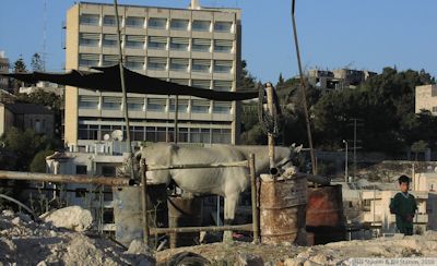 We were blessed to to live in a small and pleasant hotel where we had our own room with a full bath and a semblance of an air conditioner. In the evening people would gather in the hotel’s walled courtyard under ancient olive trees and eat dinner. The hotel restaurant was frequented not just by the humanitarian aid workers who lived there but by people who came for the quiet comradely of friends sitting under olive trees in the dark of the evening sharing stories and food. I remember the cold evenings that followed the baking hot days. Sometimes I was like a duck on the water, the top part of me that showed above the table calm and still while the lower part of me was shivering in the cold night air. The hotel had outdoor propane heaters that they would bring close to the tables as the evening closed in and the fingers of the desert reached in through the olive trees to remind us that we were in a protected and sheltered bubble in the middle of a struggle over power, land and water.