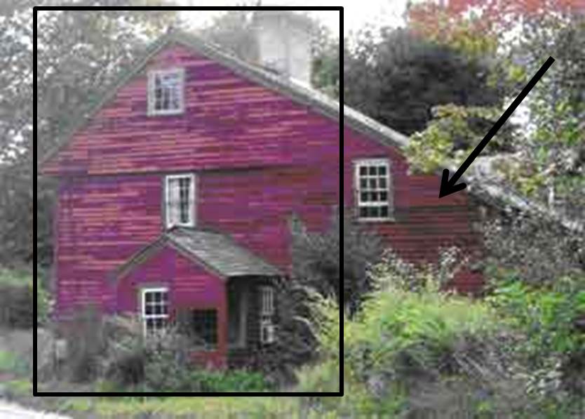 In my research on lean-tos I found out that the sloped roof of a saltbox grew out of the merging of a lean-to with an end gable house. The Andover Historic Preservation website is very interesting. I adapted the image below from an image on their site. If you look at the part of the house inside the box you can see an end-gable house. If you look at the sloped roof of the saltbox you can easily see how a lean-to became a “part of.”