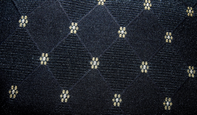 I bought two other pieces of fabric. I selected a Jacquard woven using a black on black pattern with a small taupe abstract flower woven in. Jacquard fabrics are characterized by complex woven-in designs. The Jacquard loom first came on line in 1801. Joseph Marie Jacquard, a silk-weaver, invented this textile loom that human and automated weaving.