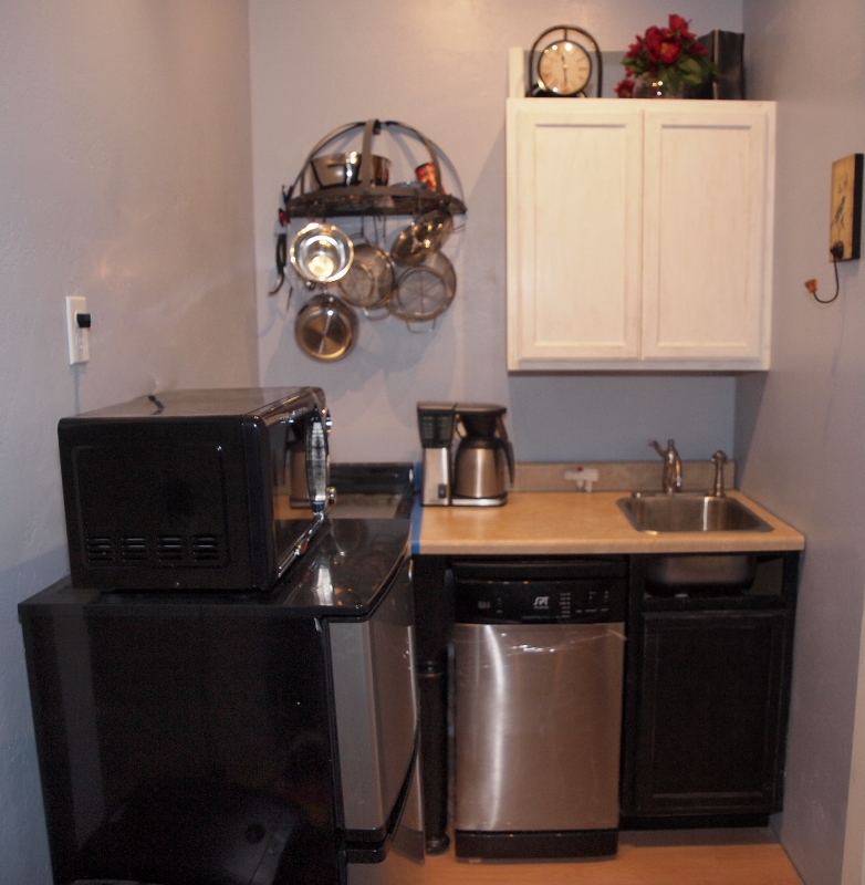 It is a good thing that we have our test kitchen. We don’t have to find out upstairs in the “big house” that we cannot do something. It is good to sneak down to the Cruise Ship and try something, especially if you find you can do it like I did with the cabinets. With so many cabinets in the main kitchen above I have to learn how to use a paint sprayer.