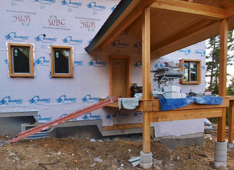 Perhaps with handle sets, locks and cords we have the best security. An erstwhile burglar would have to come on the porch, clamber over table and tile saws and tiptoe past the orange and aqua cords to get to the house to swipe the remaining two unpainted cabinets which are about the only things not nailed down. Come to think of it, there aren’t any real stairs to the porch anyway.