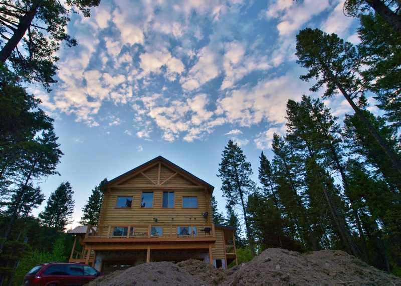 When we arrived home last night after flying in from being with my spouse’s sick Mom in Houston, we expected to see changes that had occurred in the 6 days we were gone but we did not expect to see mounds of dirt. It was pretty cool. The construction pallets that held the log siding were gone. All of the rag-tag pieces of wood and pallets and other things we had built up around the garage entry and the edges of the house to stay afloat in the mud were gone. One pallet remains, looking for all the world like a front stoop since it is covered by a very civilized scrap of plywood.