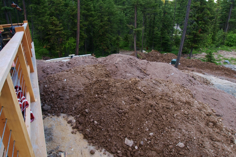 We had been expecting a few truckloads of dirt as our excavator is working on a house that needed a place to dump dirt. He coordinated his efforts so both they and we benefited. They got their dirt out of the way and we got some dirt to build up the parking area around the garage. Surveying the landscape I surmised that our excavator must be building a VERY large house to need to remove so much dirt.